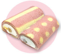なんと、水玉のロールケーキと、ストライプの、かわいいロールケーキが登場!