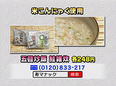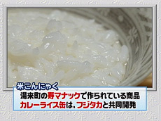 しかし今回のオススメは、 この春初登場「カレーライスの缶」380円。 ライスがこんにゃくの米でできていて、なんと 166kcal。東京の自動販売機で発売し大好評。 広島では販売していませんが、ネットでも 申し込み可能。 他にも米こんにゃくでできている「五目炒飯」や、 「鮭雑炊」もオススメ(236円)