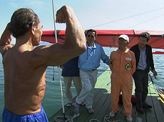 もうひとつ、この番組のはだかといえば・・・日本一の筋肉マン・金澤さんが、空を飛ぶ?