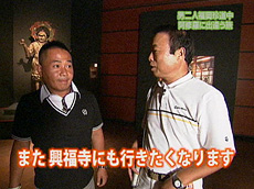 そして視聴率アップを願って大宰府天満宮を参拝した二人は、なんと、境内から続くエスカレーターで、いよいよ九州国立博物館へ。