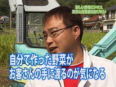 山ちゃんは、県内の安心有機野菜を店舗や朝市で提供している若者。