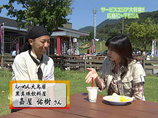 そこを目指し、広島を出発した我らがナベさんと、番組初登場のにしべみか(42歳、主婦、子供2人)、まずは、世界遺産宮島を見下ろす「宮島サービスエリア」でスイーツをいただきます!