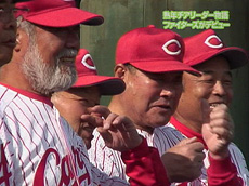 デビューの時を迎えます。 初めての応援は、なんと、カープのOBチーム。