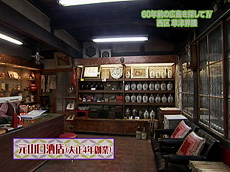 2年前まで営業をしていた酒屋。歴史を物語る酒屋の道具、通い徳利や一斗瓶、燗器などが今も残され、自宅に博物館のように展示されている。もちろん見学可能。