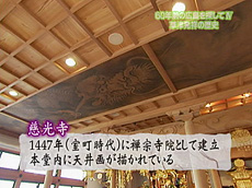 室町時代建立。本堂には室町時代の画壇の中心だった狩野派の画家による天井画が描かれて いる。さらにお寺なのに境内に鳥居が!?