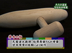 そして、廿日市といえば木工の町。だるま落とし、こま、ヨーヨーなど、昭和の玩具を製造販売している木工所へ。明治から続く店に、4月から発売開始した「秀木の指」なるものが登場! 大きな木造仏像が拝める極楽寺では、県内唯一の仏画を描く女性との出会いが! さらに、日本唯一といわれる伝統芸能「説教源氏節」を、今でも伝承している「眺楽座」が廿日市に存在。急遽、人形芝居を実演してもらうことに!伝統ある芸能文化を感じる廿日市の旅に、大ちゃんも感激。 もちろんオススメ美味も。限定2組の古民家でいただく熟年向けのヘルシーなランチをご紹介します。 さらに、スタジオには、これも廿日市産、ウワサの「泰子の焼肉のたれ」が登場!! えっ?「泰子」って誰??