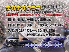 DeODEO CLUBに入会すると、一眼レフの撮影講座、ブルーレイの使い方講座、手作りパン講座など、各種講座を実施(有料・無料あり)。