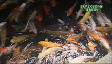 店の奥に大きな池があり、約500匹錦鯉が泳ぐ。