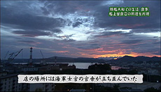 毎週○曜日は、カレーライスの日!? 厨房では、ふんどし姿?? 戦闘配食のにぎり飯には、広島のあの有名ふりかけを使用していた!? 艦内にはラムネ製造室があり、製造方法を指導したのは、呉の老舗ラムネ店? 海軍レシピにある肉じゃがの作り方とは? オムライスのグリンピースの数は決まっていた? 戦闘前日の宴会で、生まれて初めて飲んだ酒は、あの名酒だった? 大和沈没ーー重油の海を4時間漂ったあと、救助され飲まされたのは「赤ワイン」だった? さらに、祖父が呉鎮守府司令長官舎のシェフをしていたという男性が、遺志を継ぎ、呉にフレンチレストランを開業。軍艦「出雲」でだされたコースを再現しました。その思いとは?