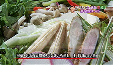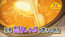 そして、「雲丹しゃぶ」も登場。タップリの雲丹ををかつおだしに溶かした贅沢な鍋汁に、白身魚や地タコ、野菜で雲丹を巻いて10秒ほどくぐらせていただく・・・雲丹大好きのなべさんも満足顔。
