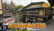 他にも、松本裕見子が大喜びの美人の湯や、渓流が横を流れる絶景・露天風呂、神秘的な洞窟風呂など、自慢の露天風呂も巡り、温泉三昧。 さらに、“そこでしか買えない酒”を置いている酒屋や、阿蘇の大地で育った野菜を漬けた漬物屋など、黒川温泉でしか味わえない魅力をたっぷりご紹介します!