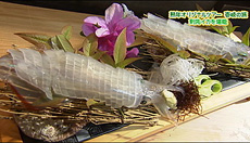 早速2人は美味しいイカが食べられるお店へ。イカの王様「剣先イカ」は、壱岐では「壱岐剣(いきつるぎ)」と呼び、ブランド化しています。透明に輝く「活きイカの姿造り」、そのお味ときたら...!