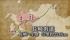 小倉から長崎までの57里(224�q)25の宿場で繋がれ、鎖国時代に海外の文化や技術が入ってくる唯一の文明ロード「長崎街道」の佐賀路を辿ります。