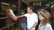続いては、ナベさんの永年の夢、乗馬体験。62歳の熟年オーナーが、一人で切り盛りする乗馬クラブへ。20代の頃、クリントイーストウッドに憧れ、乗馬を始め、48歳の時に独立。吉和の原生林を一人で切り開き、1年がかりで乗馬クラブを作りました。しかし14年たった今でも"仮オープン"?アルバイトもしながらの経営ですが、馬を愛する気持ちは誰にも負けない江田さん。ナベさん、乗馬初体験の感想は?「○○が痛い!?」