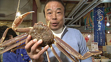 まず、ナベさんと松本裕見子が向かったのは、海鮮市場。水揚げされた松葉カニは、まさに鳥取の冬の風物詩。「松葉カニ」とは成長したズワイガニの雄で山陰地方独特の名称だとか。