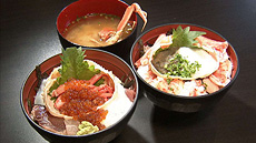 特選海鮮丼1 570円、カニ丼1 980円、親ガニの味噌汁