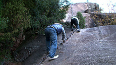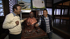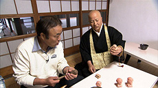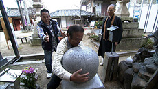 海龍寺は、人形浄瑠璃家「文楽」の墓があり、その墓に触れることで技芸が上達するとか。また江戸末期、尾道の鍛冶屋が作ったというくさり山も。二人もくさり山を登り修行!?