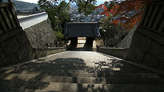 108段の石段、大小の草履が奉納されている。こ授け地蔵もあり、子宝祈願でも有名。