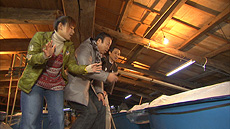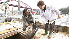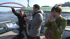 まずは日本で一番短い渡船に乗るナベさんと松本。櫓をこいでいた江戸時代から続く音戸の渡し船。橋が2本かかり、30年前の1/10にお客は減ったが、父の跡を継いだ船頭さんが今もなお人々を運び続けます。