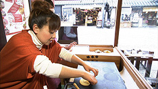 倉敷といえば、銘菓・むらすヾめ。明治10年に倉敷に名物をと、初代が当時は珍しいメリケン粉と卵を使った洋風菓子を作りました。手焼き体験をしながら、誕生秘話をうかがいます。