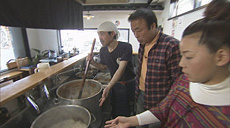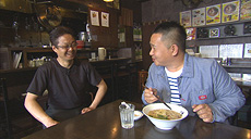 続いて、父が営む寿司・魚介料理の店の裏メニューだったという中華そばの専門店へ。父が亡くなった今も、その味は変わらず、父から引き継いだ鯖寿司と一緒にいただきくと、また格別。ナベさんも感激の美味しさです。