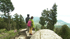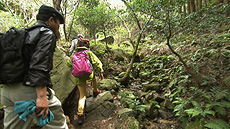 登山ガイドに案内されて、標高835m、約2時間かけて山頂を目指します。