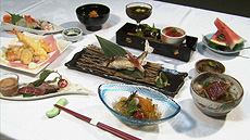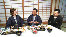 野呂山を制覇した2人は、山頂にある国民宿舎の大浴場でゆっくりと疲れを癒し、 名物の猪料理に舌鼓をうちました。