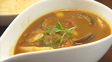 できあがったカレーに季節の野菜をたっぷりのせた“季節の野菜カレー”にナベさん大喜び! 続いては焼肉屋の限定カレーをご紹介。
