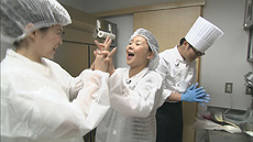 試食した専務とシェフはすっかり気に入り、ブルーベリーを生大福に使うことに決定!
