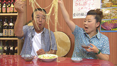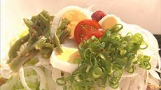 冷やしラーメンを注文した二人は、上にのる野菜の多さにビックリ!