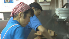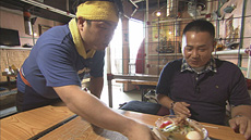 広島市中区のオフィス街にある小さなラーメン屋を訪れたナベさんと松本。