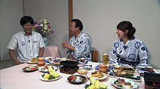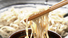 石臼でそば粉をひき、大山の名水でうったそばは、香りものどごしも最高で、ナベさん大満足!