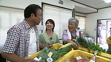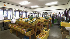山陰最古の駅舎「御来屋駅」にある駅内マルシェ。野菜や果物、加工品も並ぶ。