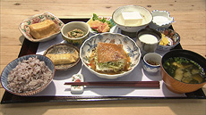 続いては広島市内で世羅の豆腐が味わえる店へ。 世羅は広島を代表する大豆の産地、水もいいので豆腐作りには抜群の環境だとか。 世羅から毎朝直送される豆腐や野菜が販売。大ちゃんは、一番人気の豆腐御膳をいただきます。