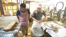 豆腐職人の常川利行さん(61)が一人で豆腐を作る店。国産にこだわる。