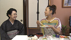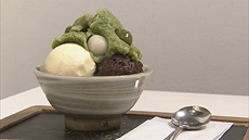続いて人気の老舗甘味処へ。もともと、絵葉書を作る店だったと聞きビックリ! 創業当時から変わらず人気の宇治金時の味に感激の二人。