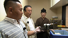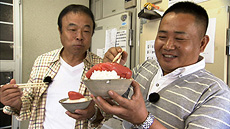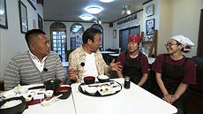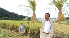 先ず2人は庄原市東城町の、アイガモや和牛と一緒にこだわりのお米作りをしている農園へ。牛の肥えによる有機農法、アイガモによる除草食虫効果で環境にやさしいお米作りを 家族で実践している農園は、今、まさに新米収穫の時。 ナベさんと大ちゃんも収穫のお手伝い。 しっかり働いた後は、炊き立てのおいしい新米をいただきます! そのおいしさに感激の二人!