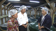 続いて「山陽鶴酒造」へ。 酒蔵にある割烹では、西条出身の板前が腕をふるいます。 ランチの人気メニュー“三段弁当”や西条名物“美酒鍋”を おいしいお酒と共にいただき大満足の2人。