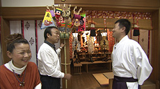 まもなくえびす講ということで、二人は胡子神社でお参り。 宮司さんから、胡子大祭(えびす講)は被爆3か月後には、バラックの社殿を作って祭典が行われ、なんと410年間、途切れることなく続いていると聞き、感心した2人。