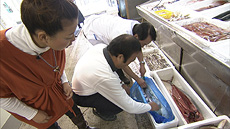 そして、中央通りになんと市場がある!?目利きの魚屋が新鮮な魚を販売しているのです。 おいしい魚の見分け方を聞き、もちろんつまみぐい!