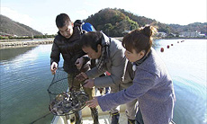 そして、今でも杉の木桶で作っている島の醤油屋へ。 一貫して手作業、そして日本の古式天然醸造で作られる本物の醤油は、 父と兄弟で守り続けられています。 塩田跡で養殖する車海老も。その美味しさの秘密とは?