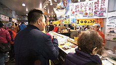 2人が先ず向かったのは下関の唐戸市場。 業者の人と一緒に一般の人も買うことができる全国でも珍しい市場です。 ここには20軒のお店が並ぶ一角があり、市場で仕入れた新鮮な味に出会えます。 フグ、クジラ、ハマチにウニなど珍味からぜいたく品まで堪能した2人。