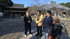 続いて数々の歴史の舞台となった土壁の町、長府へ。 高杉晋作や伊藤博文ゆかりの国宝のお寺で明治維新に思いを馳せます。