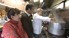 先ずなべさんと松本は、“広島人が免許を取ったら必ず行く”名店「いろり山賊」へ。 なんと、あの「山賊焼き」は、広島生まれ!? 広島市南区的場で、50円で一杯飲める居酒屋としてオープン後、 昭和46年に幻の和牛・皇牛の牧場を作りたいと玖珂町に山を買い、山賊を開店したとか。 あの「山賊むすび」は母の味?誕生秘話にも迫ります。