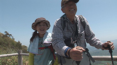一方、松本には心強い助っ人が登場!三瓶山に詳しい、さんべ荘の“とびちゃん”こと石飛清治さんと宇谷社長にガイドされ、熟年おすすめコースに出発!「東の原」の観光リフトに乗り込み余裕の滑り出し。太平山の展望台に降り立ち、いきなりの眺望にヤッホーー!
