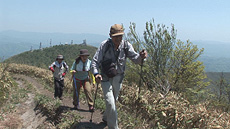 その後、女三瓶(めさんべ)を征服し、さらに三瓶山山頂の“男三瓶(おさんべ)”を目指します。徐々に道が険しくなり息も上がる…山の植物や、時折開ける周囲の絶景に癒されながら、、、なんとか登頂成功!ヤッホーーー!石飛さんらと喜びを分かち合うのでした!!