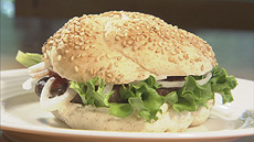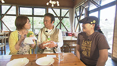 さらに歴史はさかのぼり、「国引き神話」ゆかりの神社にも参拝!「叶え杭」に“縁結び”の願い綱をかけて願掛けする串山…。 さらなる地元グルメを求めて「三瓶バーガー」へ。そこは広島からのIターン夫婦が営む店、県産食材だけで作ったご当地バーガーが楽しめます。