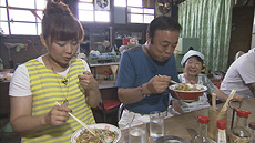 似島に降り立った2人は港の食堂へ。お店に入ると、昭和40年代の開店当初から切り盛りしているお母さんが笑顔でお出迎え。なんと似島で唯一の食堂だとか!