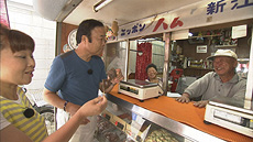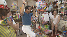 続いてなべさんと松本は50年以上の歴史がある駄菓子屋さんへ。島の子供はお小遣いをもらうとまず訪れるというこのお店。店内は今も昭和の懐かしい雰囲気が漂い、2人は大感激!