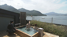 つづいて鞆の浦にある、江戸時代創業の旅籠が生まれ変わった温泉宿へ。特徴的な名前の宿に2人は興味津々。料理は真鯛を使った釜飯や鯛しゃぶなど、近海でとれた食材を中心とした懐石料理。そのお味は?そして、お風呂は瀬戸内海の島々を見渡せる貸切の温泉。目の前に広がる絶景に2人は魅了されます。